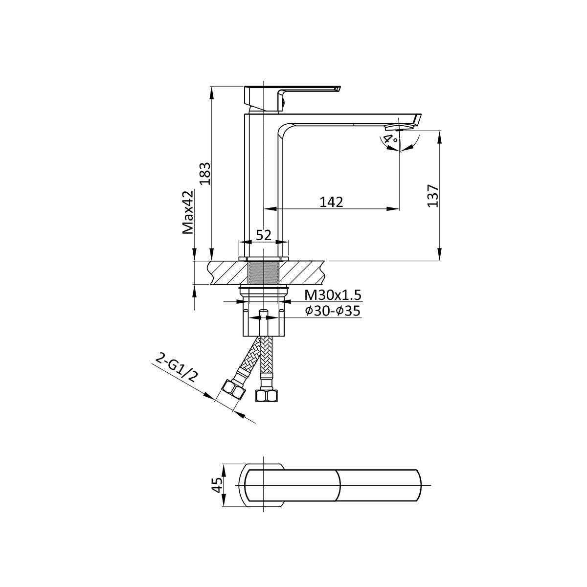35мм картдриж, 2 шланга подачи воды в комплекте