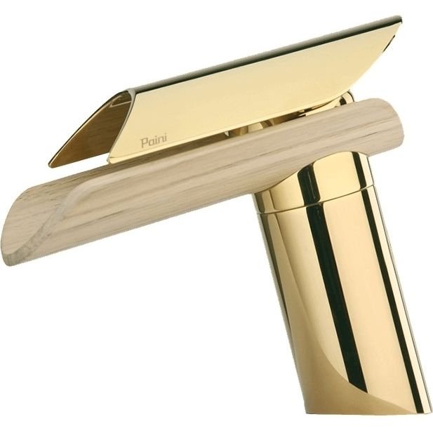 Смеситель для раковины Paini Morgana 73OP205LH. Смеситель высокий, однорычажный. Цвет изделия – золото/светлый дуб.