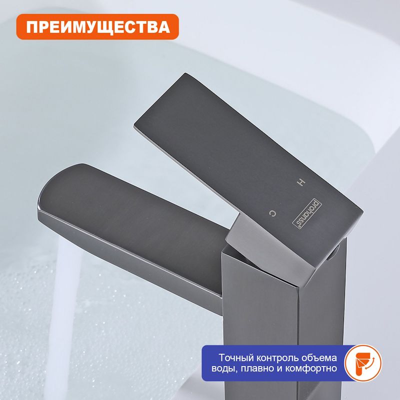 Смеситель для раковины Prohanss P30.10.09, графит — это идеальное сочетание современного минималистичного дизайна и высокого качества. Изготовленный из нержавеющей стали этот кран для умывальника обеспечивает долговечность и надёжность в использовании, а также устойчивость к механическим повреждениям. Механизм смесителя для раковины основан на керамическом картридже с рычажным управлением, что гарантирует лёгкость и точность регулировки температуры и напора воды. Его минималистичный дизайн станет настоящим украшением вашей ванной комнаты, гармонично вписываясь в любой интерьер благодаря лаконичным формам и элегантным линиям.