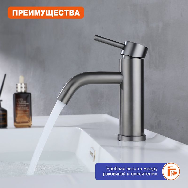 Смеситель для раковины Prohanss P31.10.09, графит — это идеальное сочетание современного минималистичного дизайна и высокого качества. Изготовленный из нержавеющей стали этот кран для умывальника обеспечивает долговечность и надёжность в использовании, а также устойчивость к механическим повреждениям. Механизм смесителя для раковины основан на керамическом картридже с рычажным управлением, что гарантирует лёгкость и точность регулировки температуры и напора воды. Его минималистичный дизайн станет настоящим украшением вашей ванной комнаты, гармонично вписываясь в любой интерьер благодаря лаконичным формам и элегантным линиям.