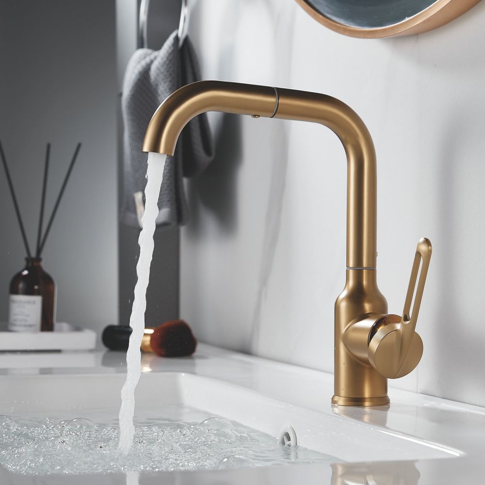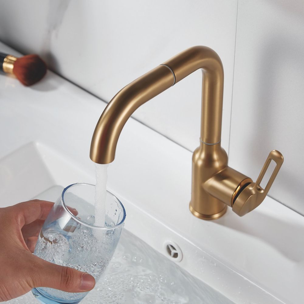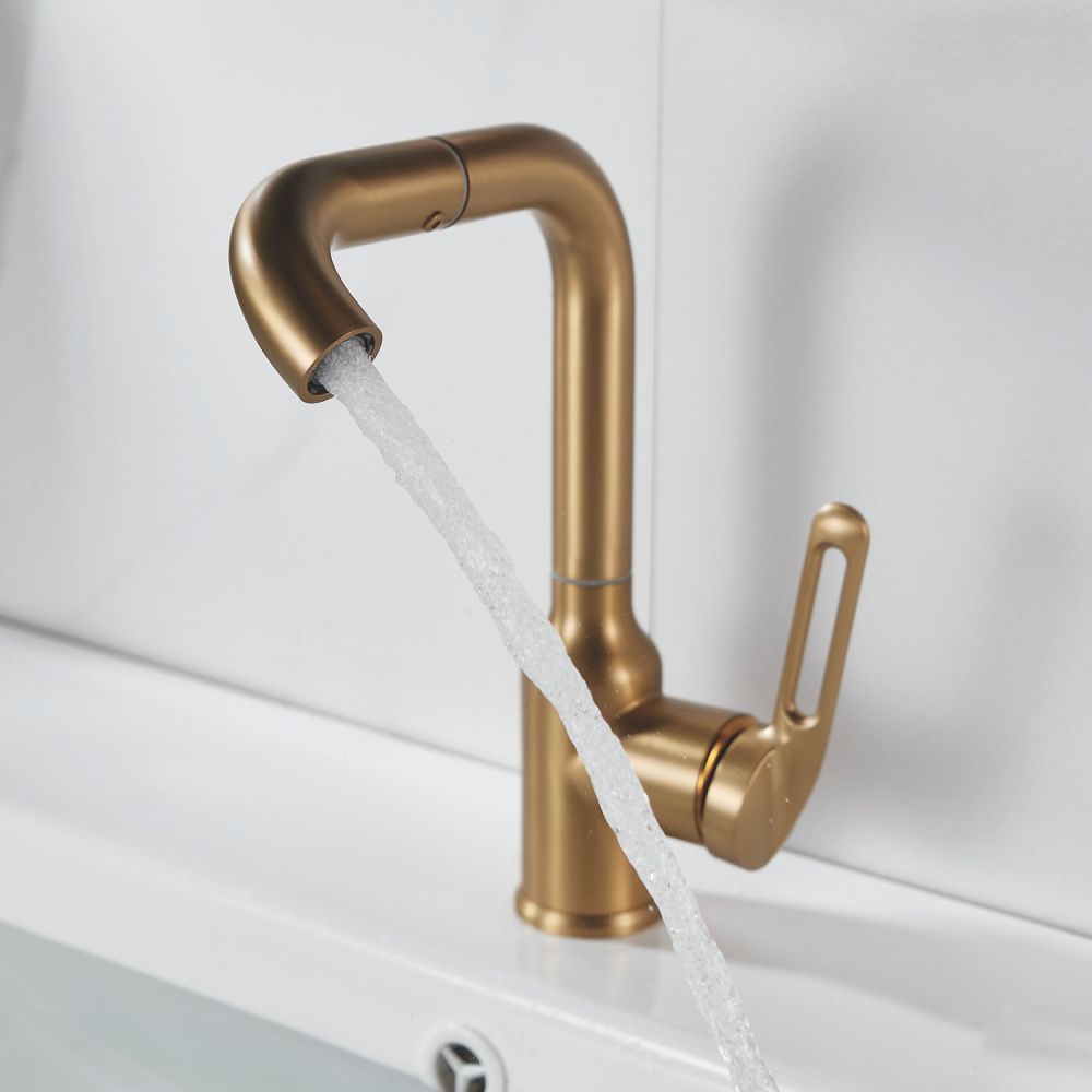 Смеситель для раковины Raffine F201G в цвете "золотой сатин" (матовое золото) — стильное и надёжное решение для вашей ванной комнаты. Изготовлен из высококачественной нержавеющей стали, что гарантирует его прочность и долговечность.