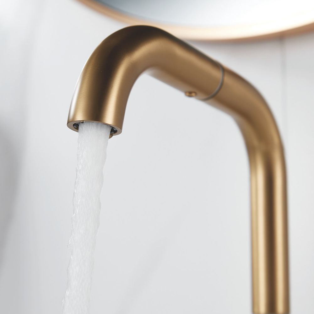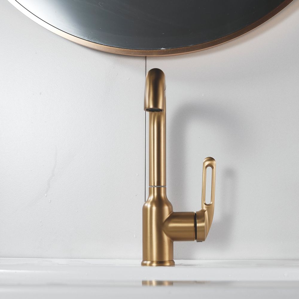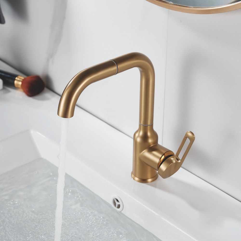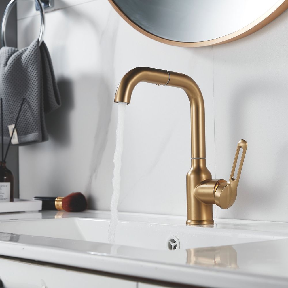 Смеситель для раковины Raffine F201G в цвете "золотой сатин" (матовое золото) — стильное и надёжное решение для вашей ванной комнаты. Изготовлен из высококачественной нержавеющей стали, что гарантирует его прочность и долговечность.
