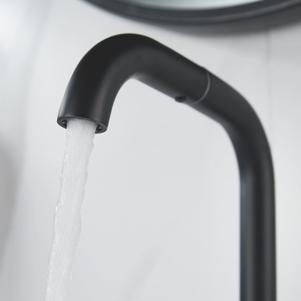 Особенностью смесителя является его поворотный излив, который не только вращается по своей оси, но и позволяет направлять струю воды под углом. Излив оснащён аэратором, обеспечивающим экономию воды и мягкий равномерный поток.
