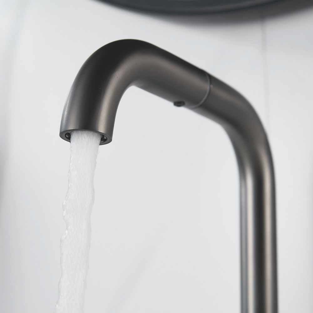 Смеситель для раковины Raffine F201T в цвете "оружейная сталь" — стильное и надёжное решение для вашей ванной комнаты. Изготовлен из высококачественной нержавеющей стали, что гарантирует его прочность и долговечность.
