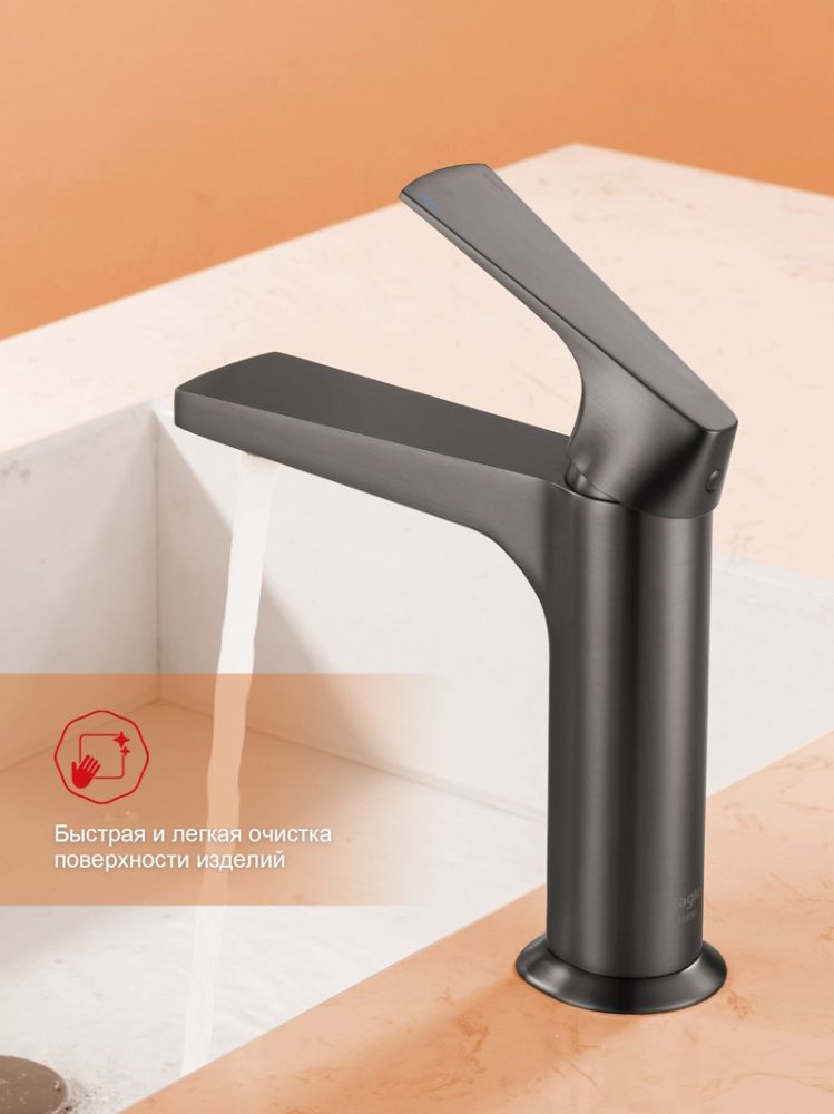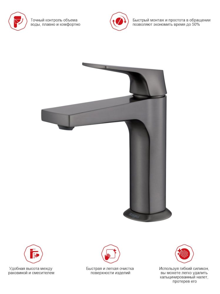 Смеситель для раковины Raglo R07.10.09 в цвете графит — это идеальное сочетание современного минималистичного дизайна и высокого качества. Изготовленный из высококачественной латуни, этот кран для умывальника обеспечивает долговечность и надёжность в использовании, а также устойчивость к механическим повреждениям. Механизм смесителя для раковины основан на керамическом картридже с рычажным управлением, что гарантирует лёгкость и точность регулировки температуры и напора воды. Дизайн этого смесителя станет настоящим украшением вашей ванной комнаты, гармонично вписываясь в любой интерьер благодаря лаконичным формам и элегантным линиям.