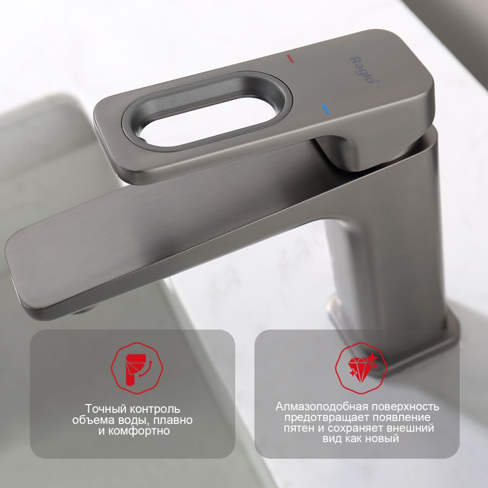 Смеситель для раковины RAGLО имеет повышенную прочность корпуса. Соответствует требованиям международного стандарта. Одна рукоять для регулировки воды. Аэратор гарантирует одинаковый поток воды, сеточка рассеивает напор, вода смягчается. Смеситель устанавливается на гайке, нижняя часть смесителя вставляется в отверстие для монтажа и затягивается гайкой для фиксации. Данный Смеситель для раковины имеет надежный стационарный излив, не меняющий своего положении. Смеситель прекрасно смешивает потоки воды, а помимо этого обладает невысоки показателем шумов. Быстрый монтаж. Гарантия производителя 7 лет.