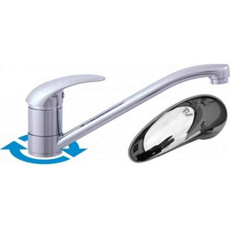 Смеситель для кухни Dunaj Rav Slezak с поворотным изливом. Гибкая подводка 1/2 длинной 35 см. Горизонтальный тип монтажа.