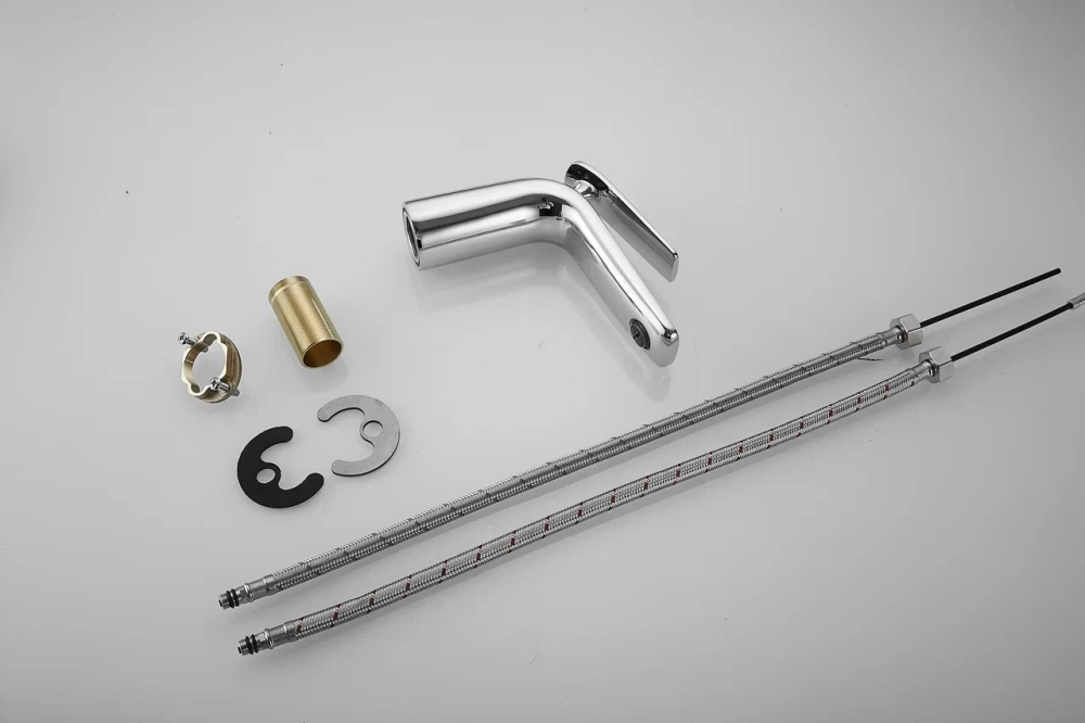 Смеситель для раковины Rose R39 R3901, хром. Материал: латунь. Управление: рычажное. Стилистика дизайна: Современный стиль. Подводка: гибкая, 1/2" .