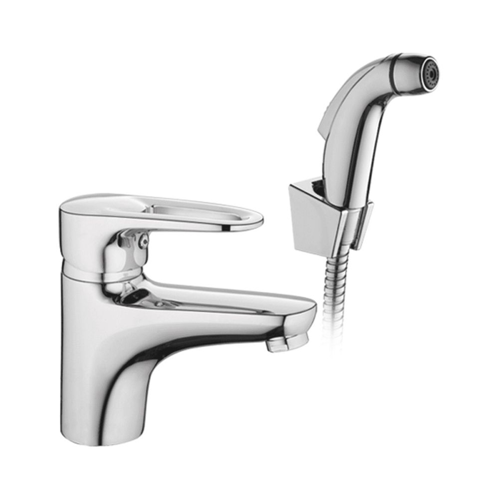 смеситель для умывальника с гигиен. лейкой, H=145 мм