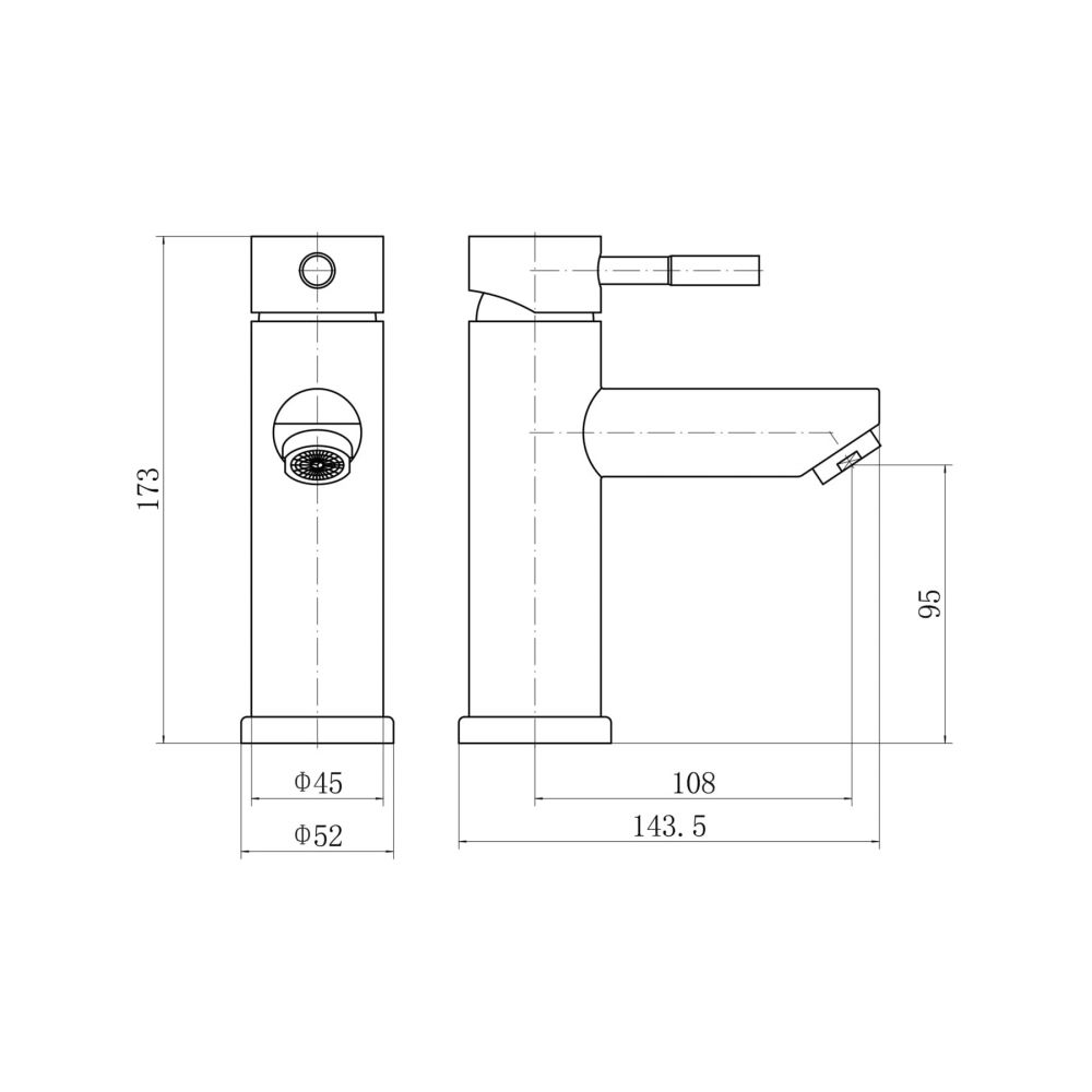 смеситель: сталь SUS304, картридж D=35 мм, излив H=95 мм