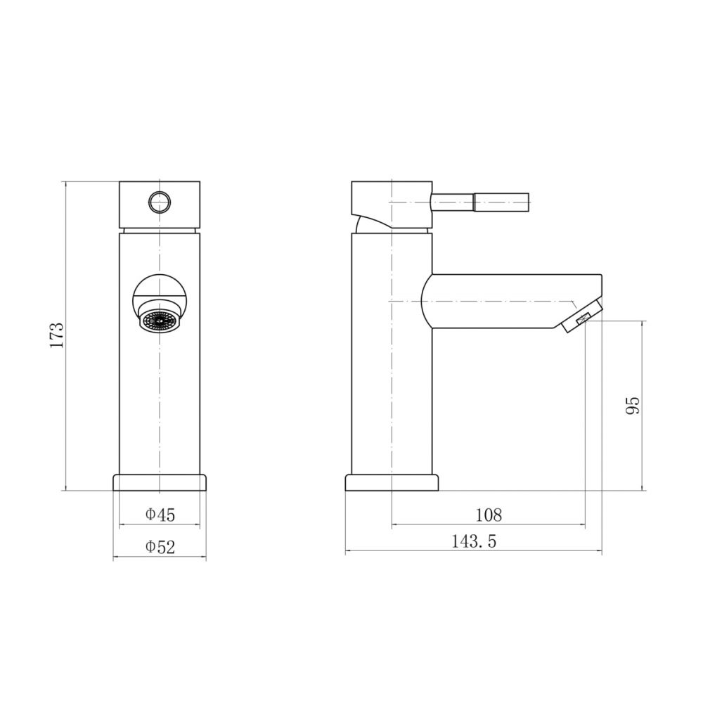 смеситель: сталь SUS304, картридж D=35 мм, излив H=95 мм