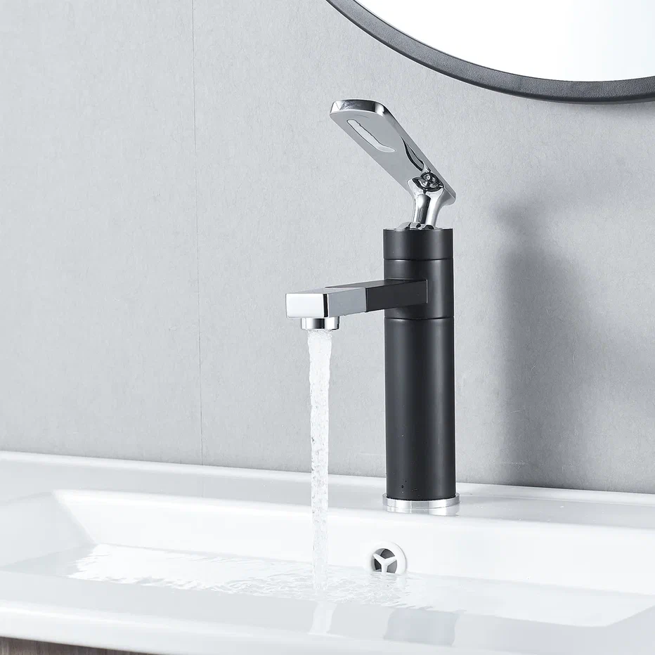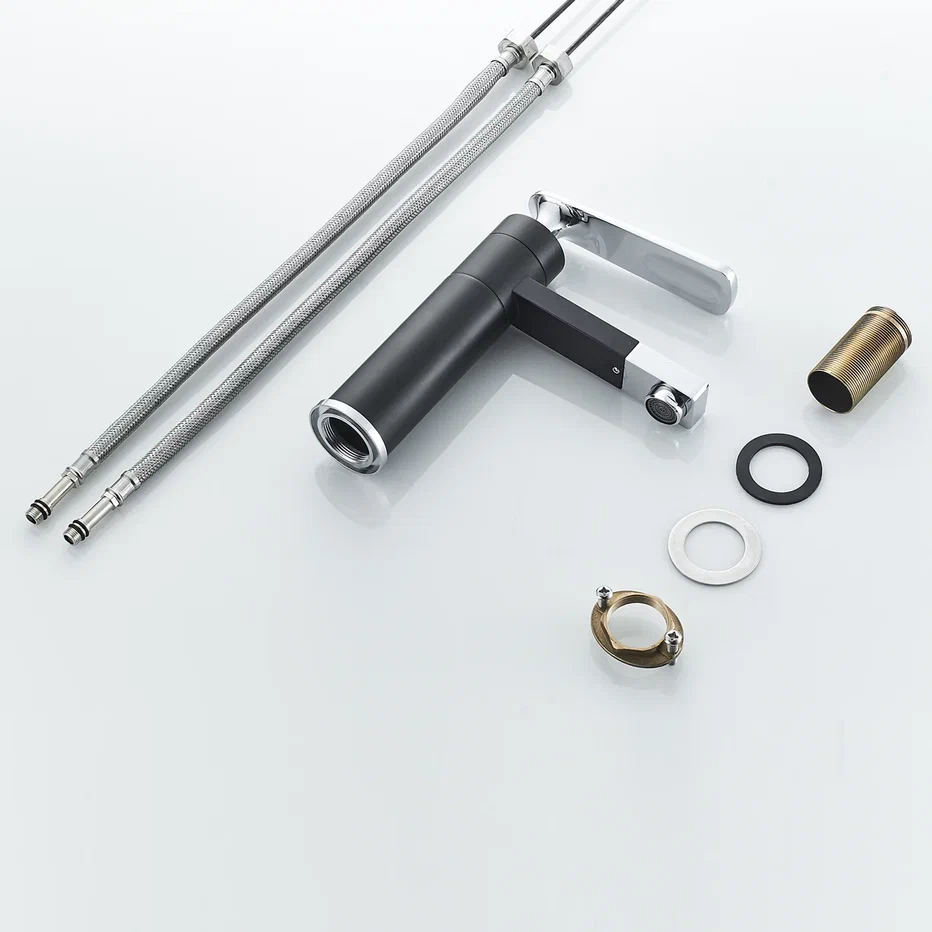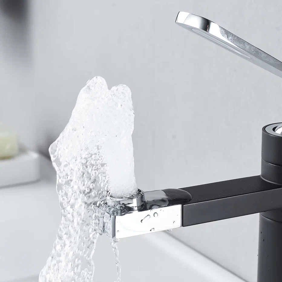 Смеситель для раковины с поворотным носиком Shevanik S6601H, черный/хром. Стилистика дизайна: Современный cтиль. Монтаж: на раковину. Излив: традиционный, поворотный. Подводка: гибкая, 1/2" . Материал: латунь.