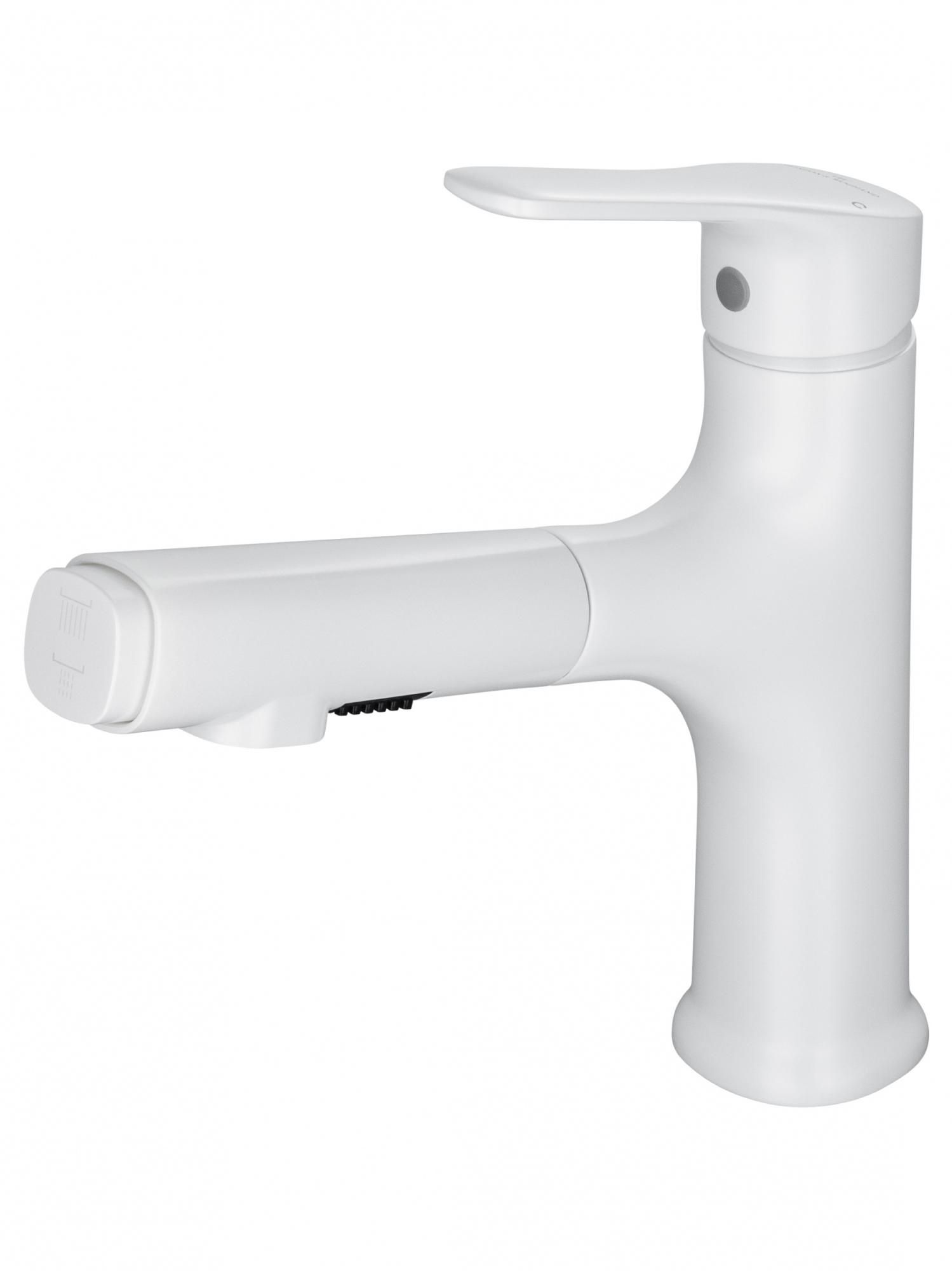 Смеситель для раковины с выдвижным изливом WONZON & WOGHAND, Белый матовый (WW-AE4151-MW)