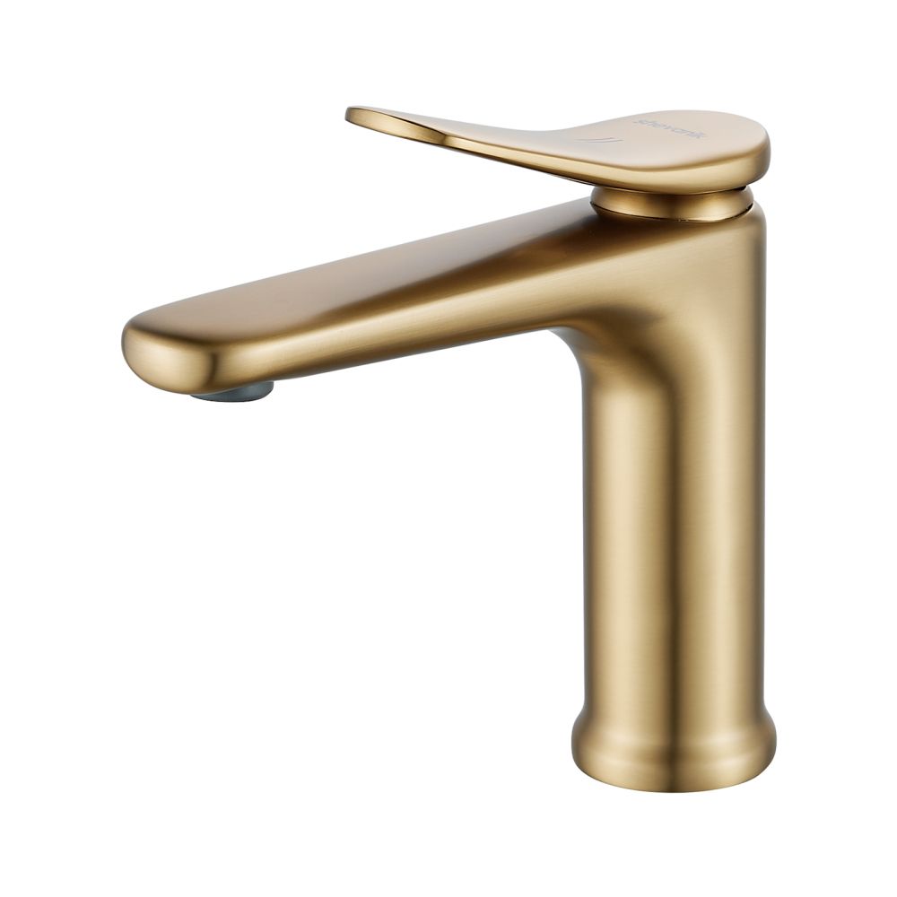 Смеситель для раковины Shevanik S4701G в цвете "золотой сатин" (шлифованное золото) — это идеальное сочетание современного минималистичного дизайна и высокого качества. Изготовленный из прочной латуни, он обеспечивает долговечность и надёжность в использовании. Механизм смесителя основан на керамическом картридже с рычажным управлением, что гарантирует лёгкость и точность регулировки температуры и напора воды.
