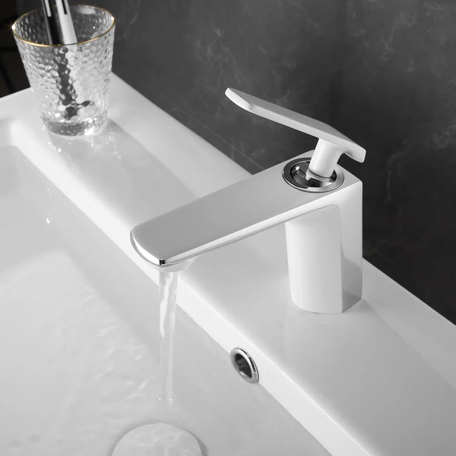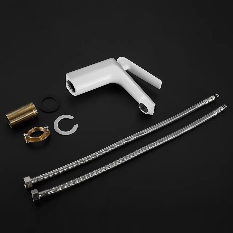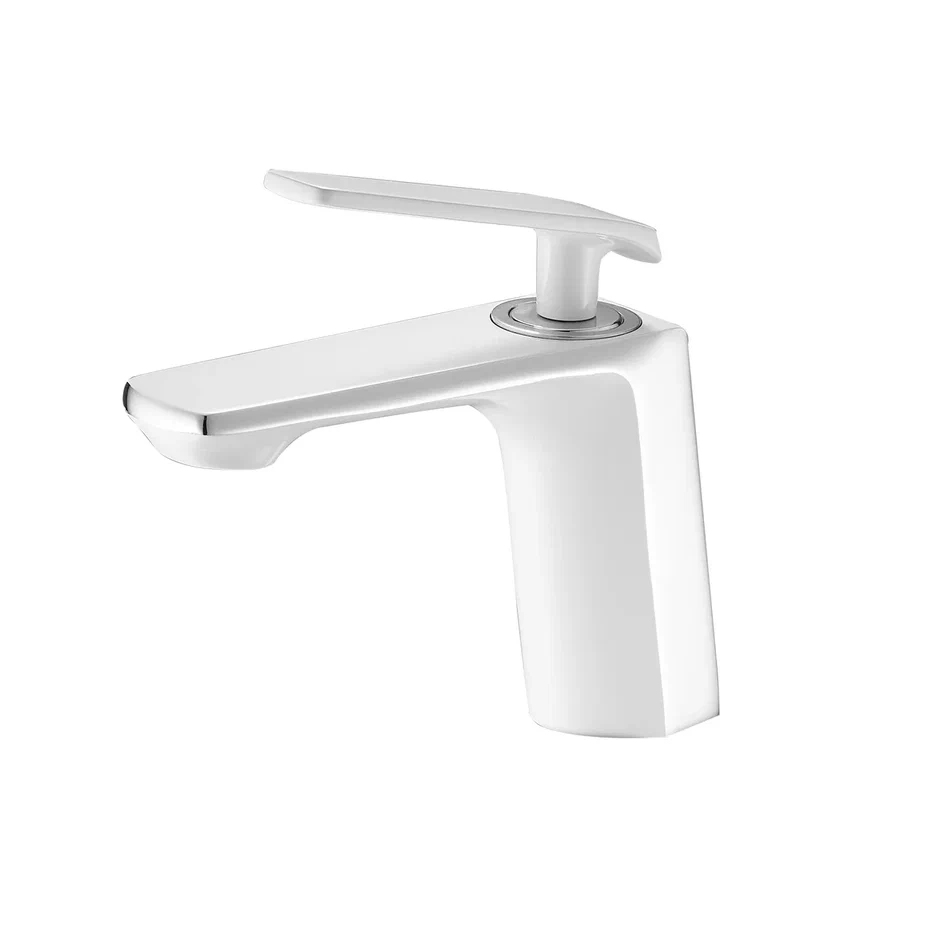 Смеситель для раковины Shevanik S8001F, белый/хром. Стилистика дизайна: Современный cтиль. Монтаж: на раковину. Излив: традиционный, фиксированный. Подводка: гибкая, 1/2" . Материал: латунь.