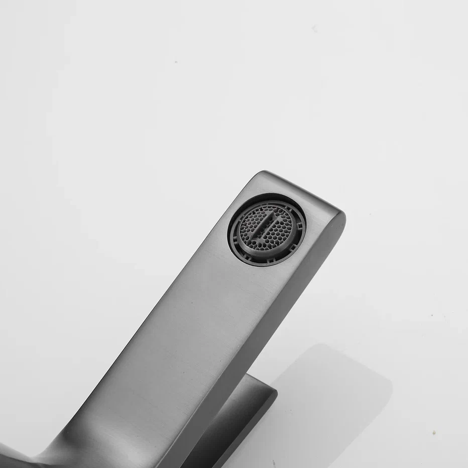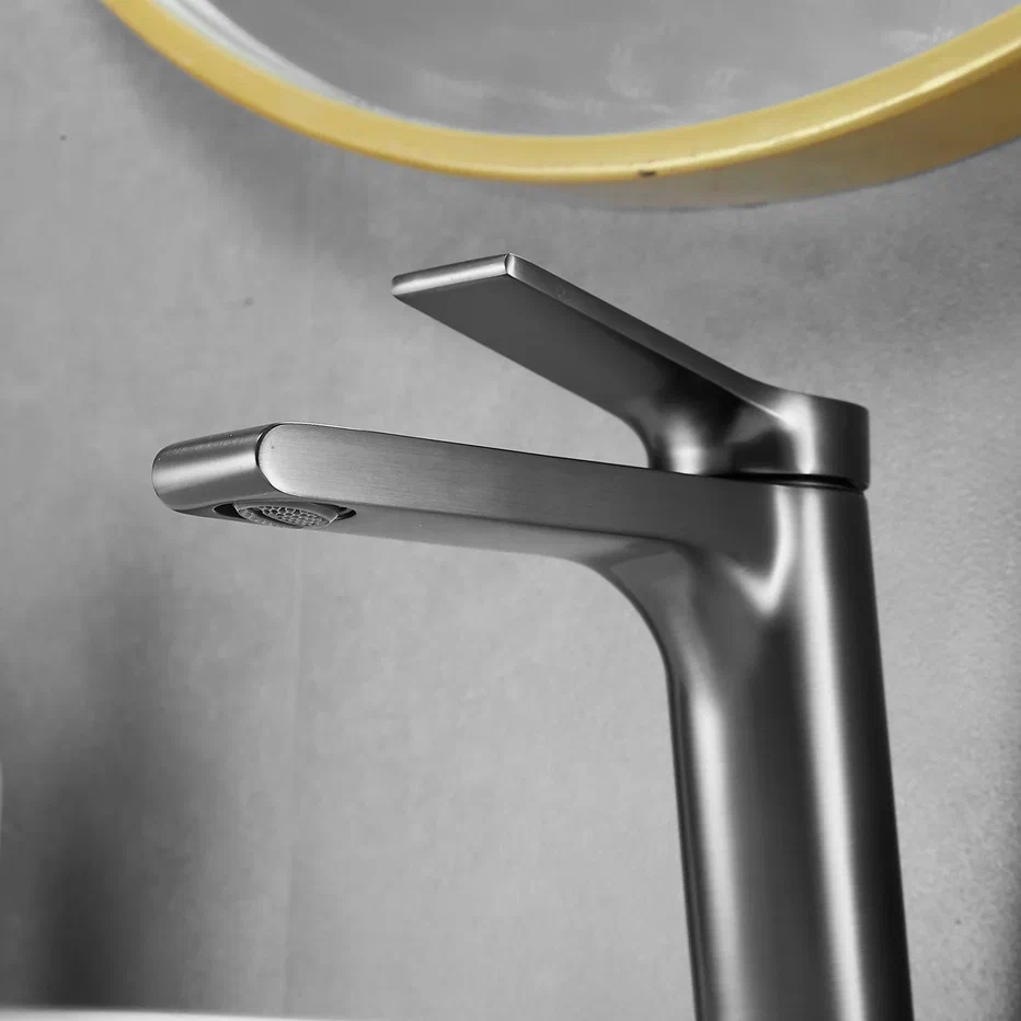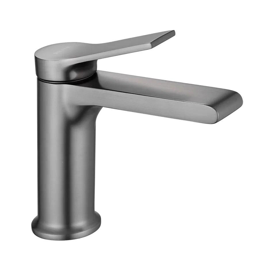 Смеситель для раковины Shevanik S8301T, оружейная сталь. Стилистика дизайна: Современный cтиль. Монтаж: на раковину. Излив: традиционный, фиксированный. Подводка: гибкая, 1/2" . Материал: латунь.