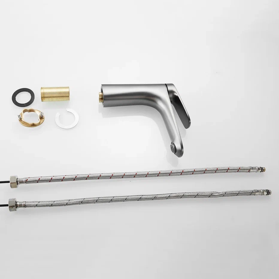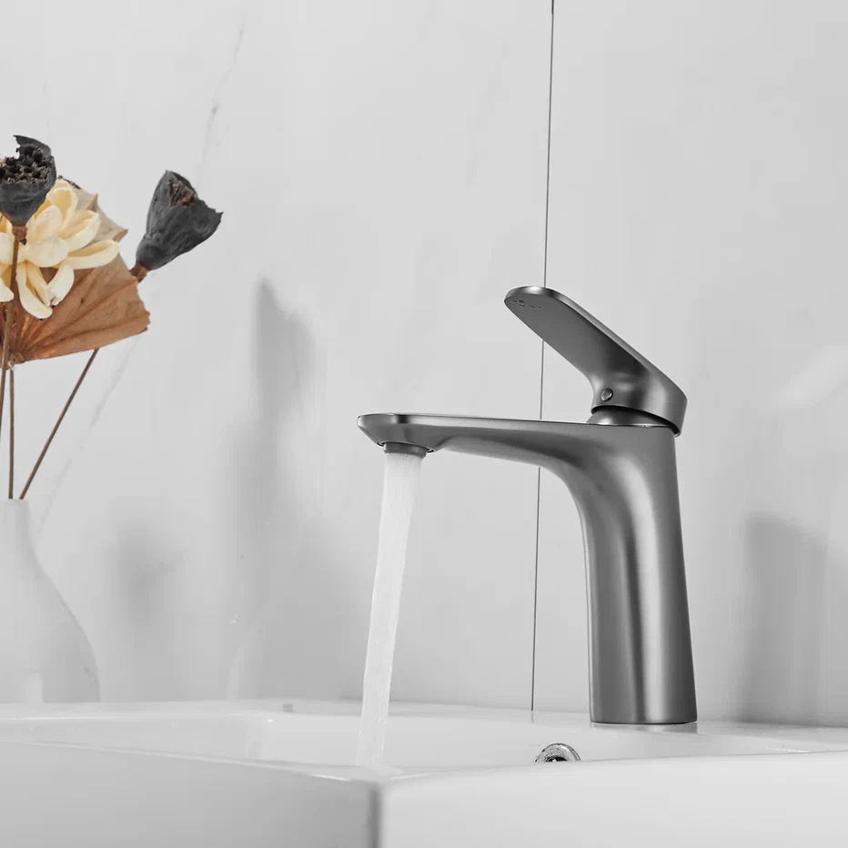 Смеситель для раковины Shevanik S8501T, оружейная сталь. Стилистика дизайна: Современный cтиль. Монтаж: на раковину. Излив: традиционный, фиксированный. Подводка: гибкая, 1/2" . Материал: латунь.
