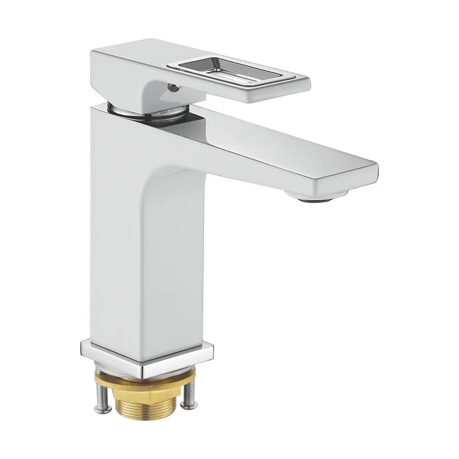 Смеситель для раковины Shevanik S9001F, белый/хром. Стилистика дизайна: Современный cтиль. Монтаж: на раковину. Излив: традиционный, фиксированный. Подводка: гибкая, 1/2" . Материал: латунь.