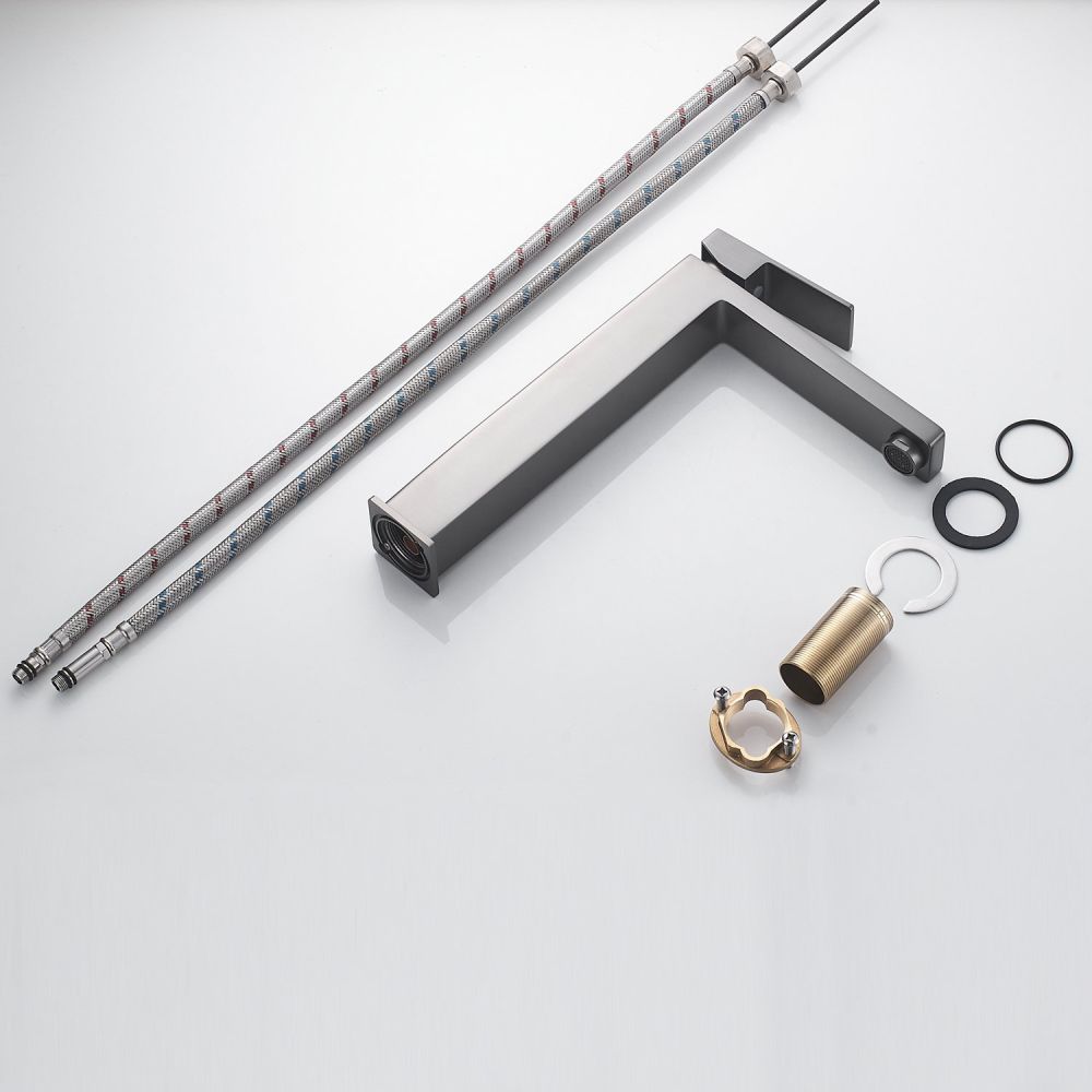 Смеситель для раковины Shevanik S9611T, оружейная сталь. Стилистика дизайна: Современный cтиль. Монтаж: на столешницу. Излив: традиционный, фиксированный. Подводка: гибкая, 1/2" . Материал: латунь.