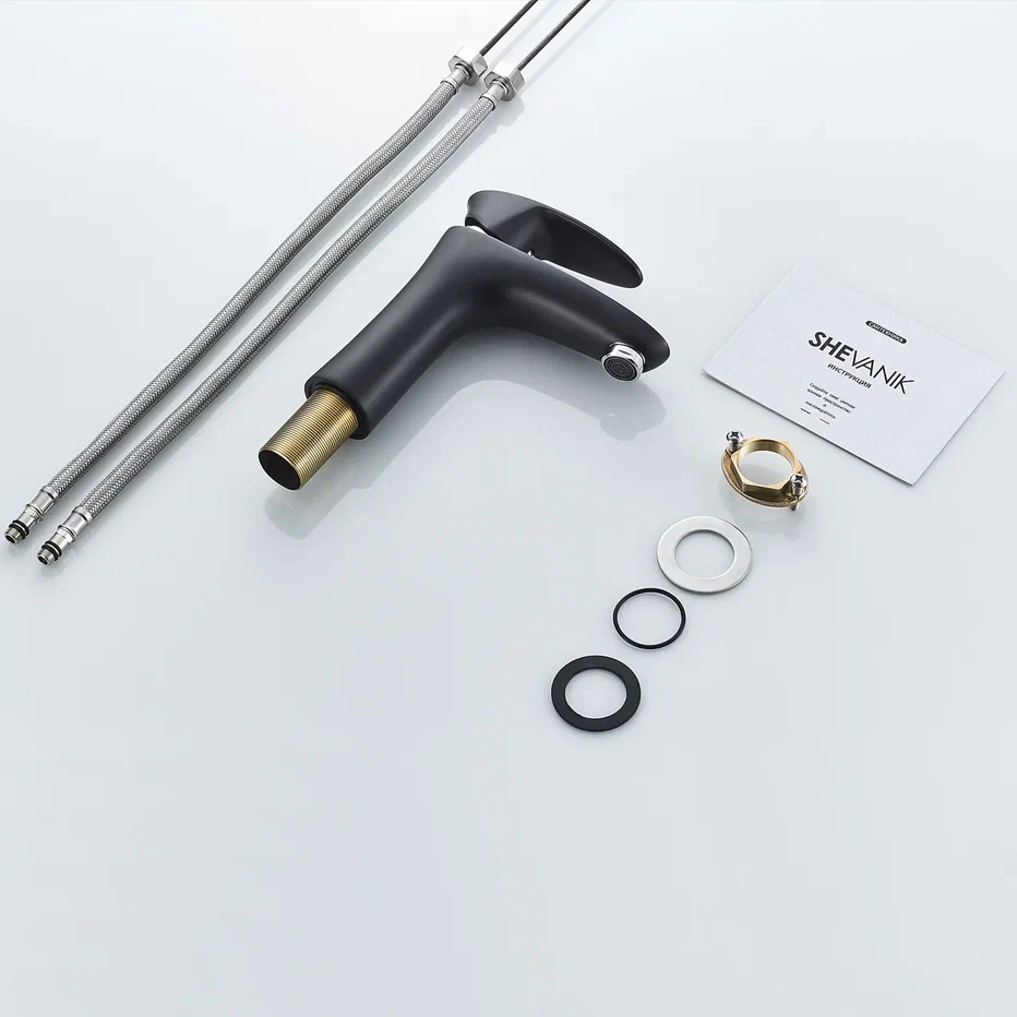 Смеситель для раковины Shevanik S9801H, черный/хром. Стилистика дизайна: Современный cтиль. Монтаж: на раковину. Излив: традиционный, фиксированный. Подводка: гибкая, 1/2" . Материал: латунь.
