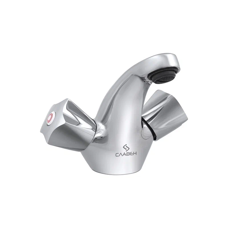 Современный двухрычажный смеситель для раковины с коротким монолитным изливом от компании «СЛАВЕН» c собственной сборочной линией полного цикла в Подмосковье.