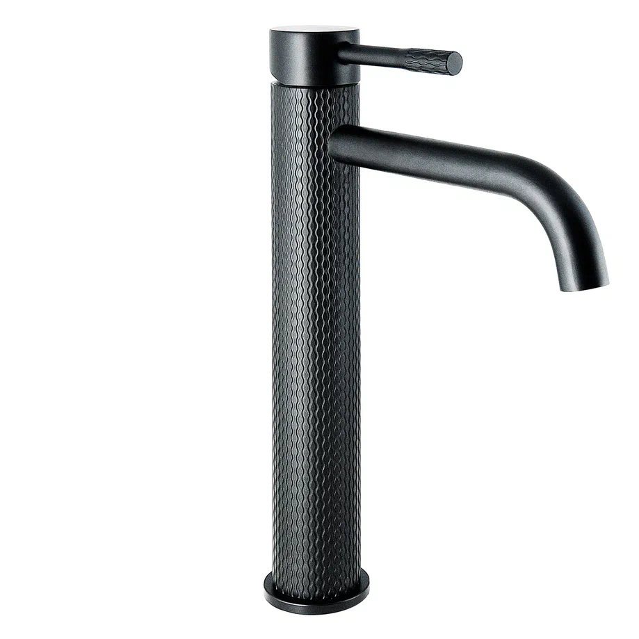 Современный однорычажный смеситель для умывальника с высоким рельефным корпусом и монолитным изливом от компании «СЛАВЕН» c собственной сборочной линией полного цикла в Подмосковье.