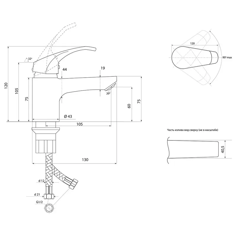 Тип затвора: Картридж керамический, 40 мм. Угол поворота 100 °;