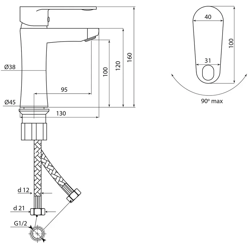 Тип затвора: Картридж керамический, 35 мм. Угол поворота 100 °;