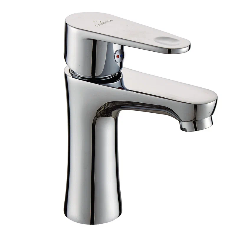 Современный однорычажный смеситель для раковины с коротким монолитным изливом от компании «СЛАВЕН» c собственной сборочной линией полного цикла в Подмосковье.