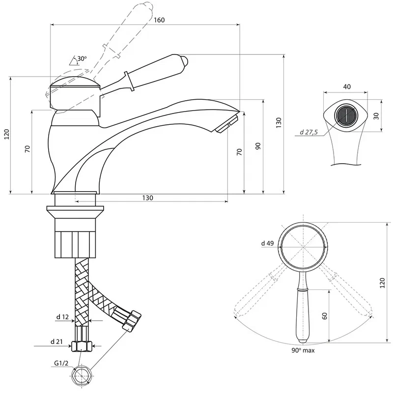 Тип затвора: Картридж керамический, 40 мм. Угол поворота 100 °;