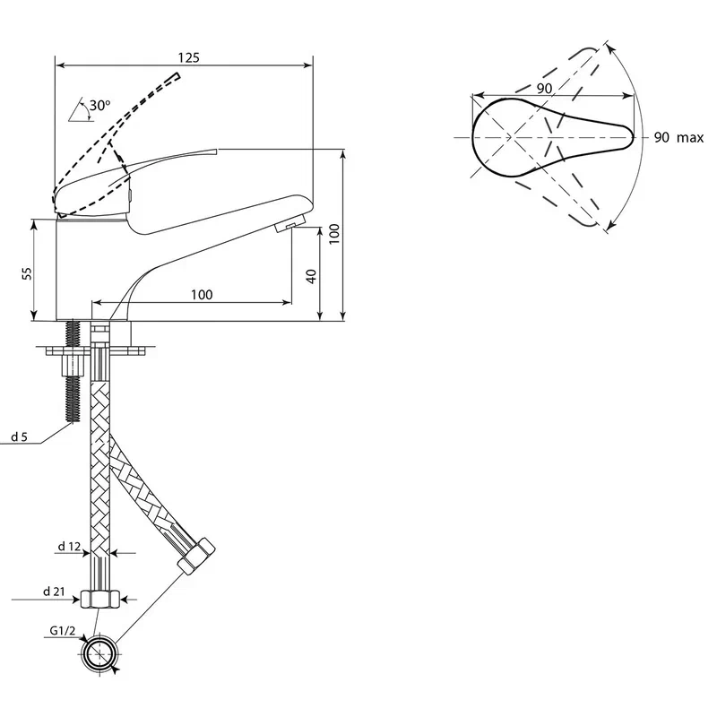 Тип подводки для воды: Гибкая подводка, длина 400 мм;