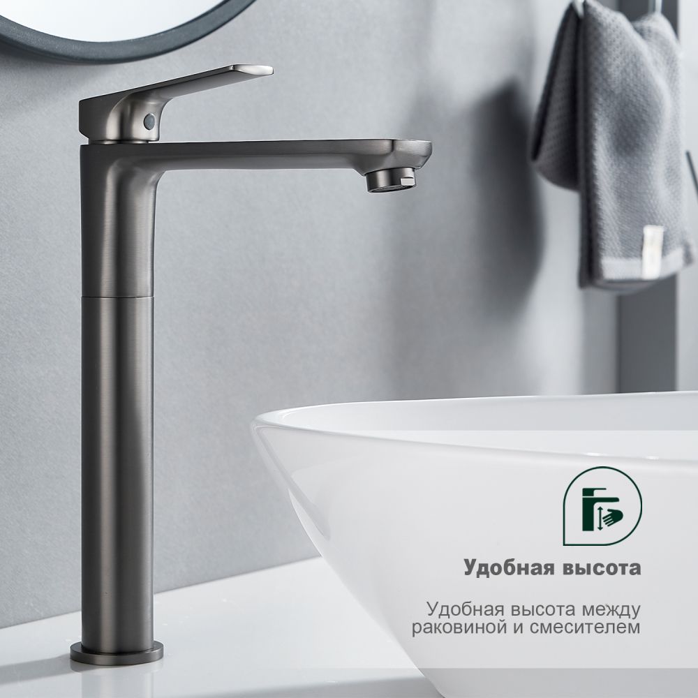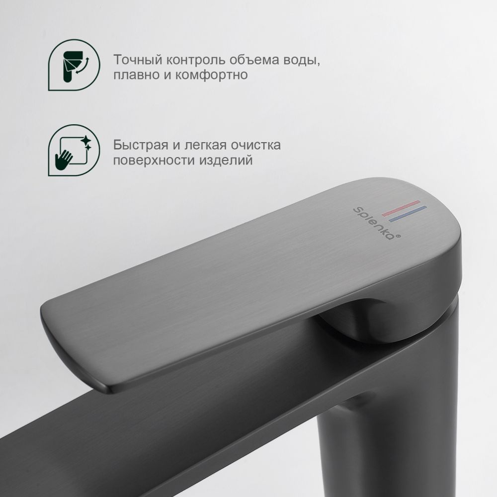 Смеситель для раковины Splenka S30.15.09, графит. Смеситель для раковины Splenka имеет повышенную прочность корпуса. Соответствует требованиям международного стандарта. Одна рукоять для регулировки воды. Аэратор гарантирует одинаковый поток воды, сеточка рассеивает напор, вода смягчается. Смеситель устанавливается на гайке, нижняя часть смесителя вставляется в отверстие для монтажа и затягивается гайкой для фиксации. Данный Смеситель для раковины имеет надежный стационарный излив, не меняющий своего положении. Смеситель прекрасно смешивает потоки воды, а помимо этого обладает невысоки показателем шумов. Быстрый монтаж. Гарантия производителя 5 лет.