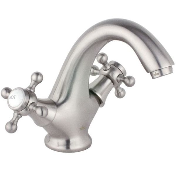 Двухвентильный смеситель с фиксированным изливом и аэратором, монтируемый в одно отверстие. Имеет долгий срок эксплуатации за счет качественных деталей, неприхотлив в уходе. Станет прекрасным дополнением ванной комнаты.