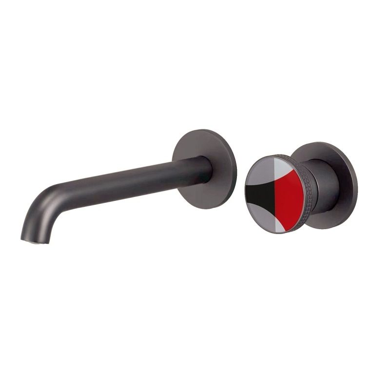 Смеситель для раковины встраиваемый Bronze de Luxe 9007GM-R, графит/красный. Управление: рычажное. Поверхность: матовая. Монтаж: внутренний (скрытый). Длина излива, см: 19,5.