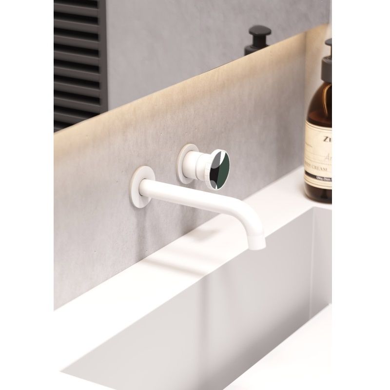 Смеситель для раковины встраиваемый Bronze de Luxe 9007W-G, белый/зеленый. Управление: рычажное. Поверхность: матовая. Монтаж: внутренний (скрытый). Длина излива, см: 19,5.