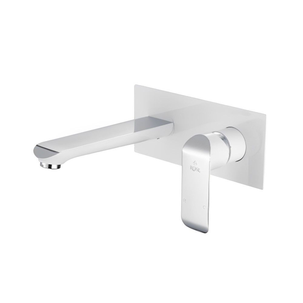 Смеситель для раковины встраиваемый Rose R21F R2141F, белый/хром. Материал: латунь. Управление: рычажное. Стилистика дизайна: Современный стиль. Подводка: жесткая, 1/2" .