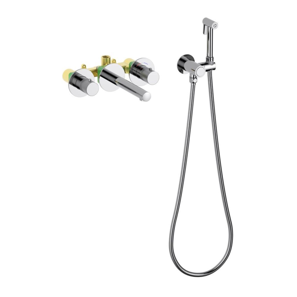 Корпус смесителя встраиваемый (латунь) - 1 шт. Декоративные накладки - 3 шт. Декоративные гильзы - 2 шт. Ручка управления смесителем - 1 шт. Ручка управления термостатом - 1 шт. Излив (латунь) - 1 шт. Соединительная трубка - 1 шт. Гайка - 1 шт. Сервисный ключ - 1 шт. Гигиеническая лейка (латунь) - 1 шт. Держатель лейки с подключением шланга (латунь) - 1 шт. Шланг душа (латунь) - 1 шт. Инструкция - 1 шт. |