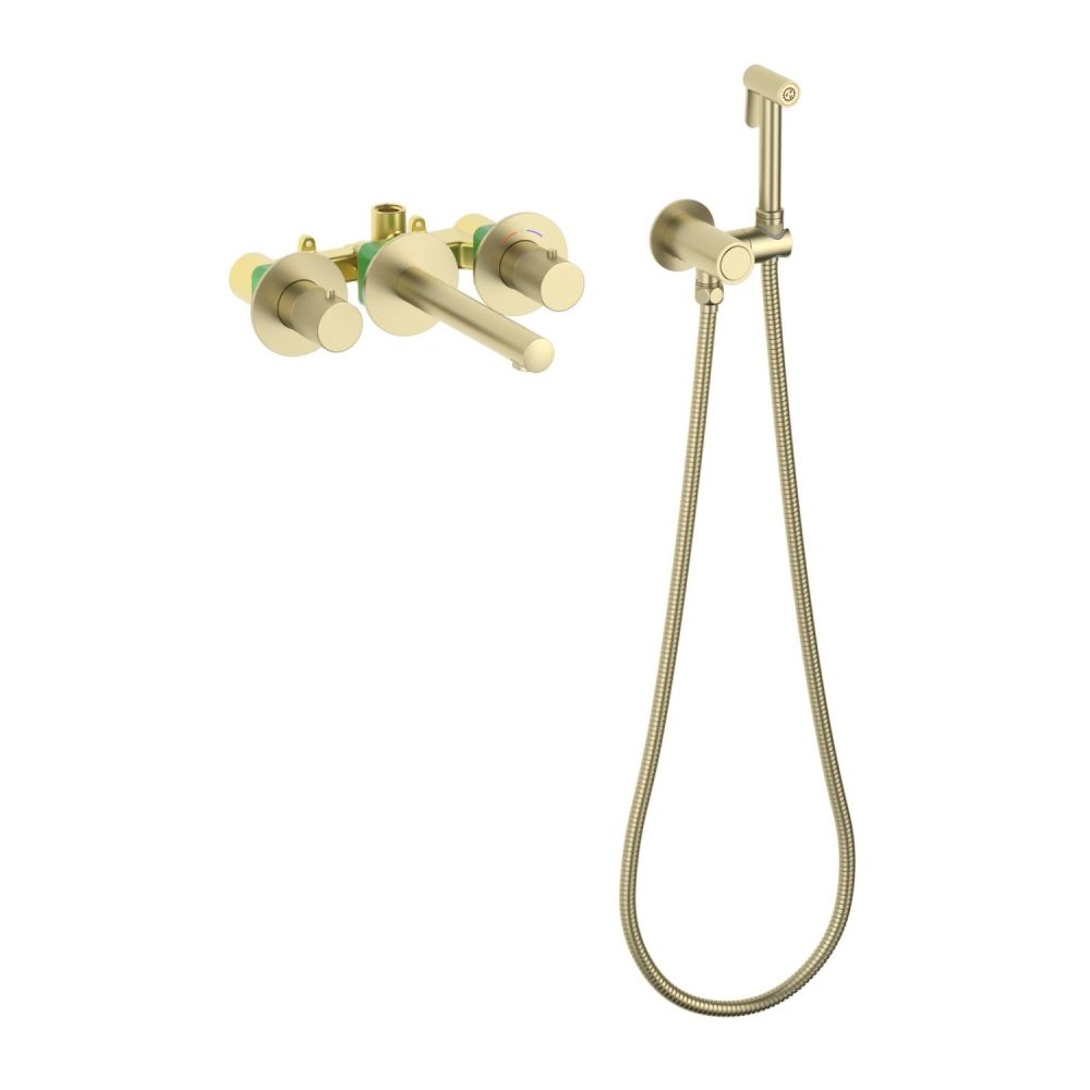 Корпус смесителя встраиваемый (латунь) - 1 шт. Декоративные накладки - 3 шт. Декоративные гильзы - 2 шт. Ручка управления смесителем - 1 шт. Ручка управления термостатом - 1 шт. Излив (латунь) - 1 шт. Соединительная трубка - 1 шт. Гайка - 1 шт. Сервисный ключ - 1 шт. Гигиеническая лейка (латунь) - 1 шт. Держатель лейки с подключением шланга (латунь) - 1 шт. Шланг душа (латунь) - 1 шт. Инструкция - 1 шт. |