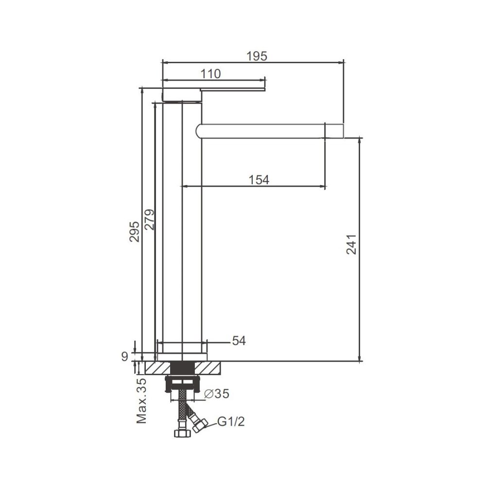 Рычажное управление обеспечивает удобство использования, а керамический картридж диаметром 35 мм гарантирует плавность хода и надёжность работы. Фиксированный излив оснащён аэратором, который способствует более равномерному потоку воды и экономии расхода. Максимальная толщина установки составляет 35 мм, а крепление осуществляется при помощи гайки. Гибкая подводка длиной 45 см (M10*1-G1/2) обеспечивает лёгкость монтажа и подключения смесителя к системе водоснабжения. На смеситель предоставляется гарантия 5 лет, что подтверждает его высокое качество и надёжность.