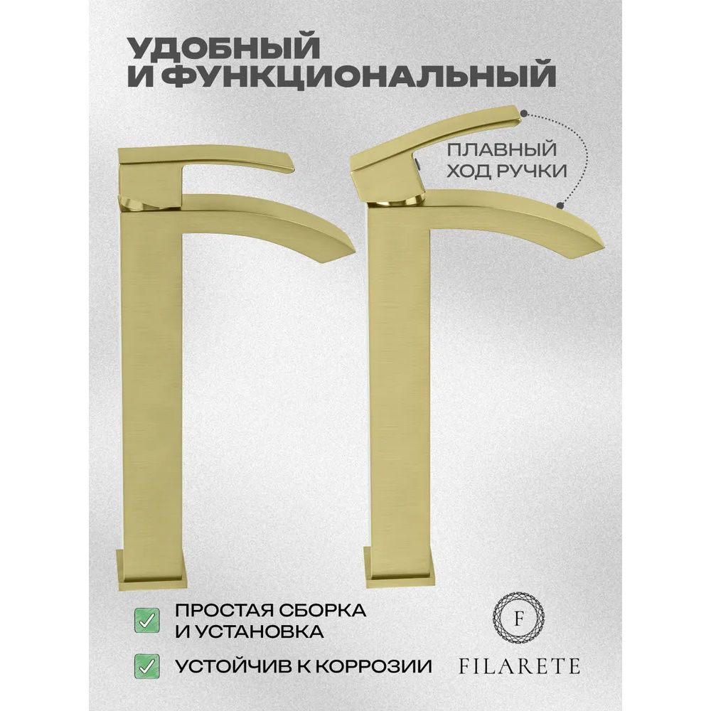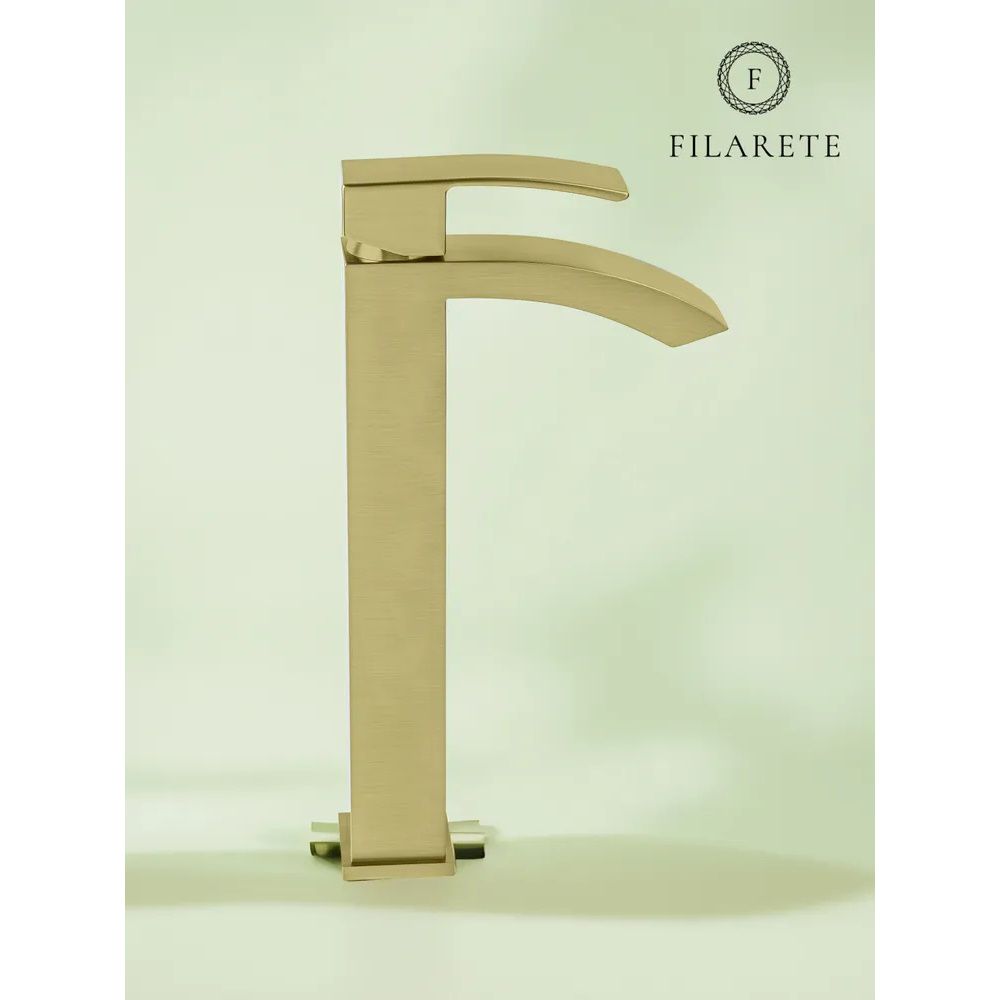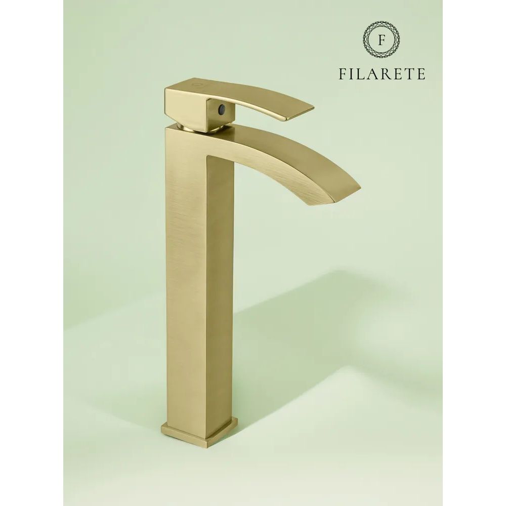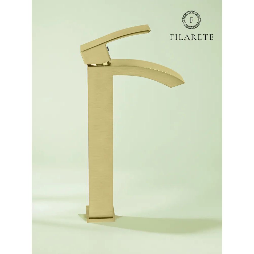 Смеситель для раковины высокий FILARETE Waterfall FL6010MG, матовое золото. Гарантийный срок: 7 лет. Управление: рычажное. Стилистика дизайна: современный стиль. Материал: латунь. Монтаж: на столешницу.
