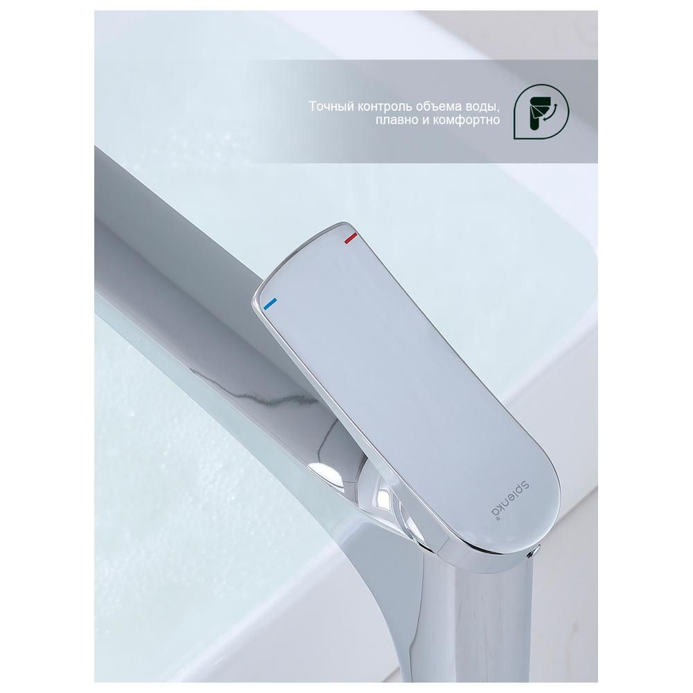 Смеситель для раковины высокий Splenka S54.15, хром — это идеальное сочетание современного минималистичного дизайна и высокого качества. Изготовленный из латуни, этот высокий кран для умывальника обеспечивает долговечность и надёжность в использовании, а также устойчивость к механическим повреждениям. Механизм смесителя для раковины основан на керамическом картридже с рычажным управлением, что гарантирует лёгкость и точность регулировки температуры и напора воды. Его минималистичный дизайн станет настоящим украшением вашей ванной комнаты, гармонично вписываясь в любой интерьер благодаря лаконичным формам и элегантным линиям.