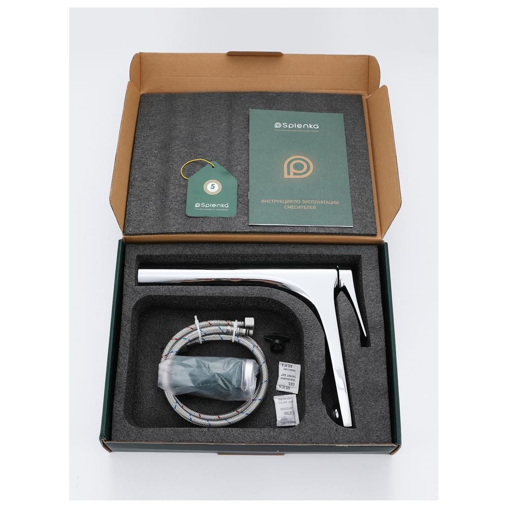 Излив этого смесителя для раковины фиксированный и оснащён аэратором, который способствует более равномерному и мягкому потоку воды. В комплекте со смесителем для умывальника идёт гибкая подводка со стандартным подключением 1/2", что упрощает процесс установки. Кран для раковины в ванную Splenka S54.15 — это идеальное сочетание современного дизайна, практичности и надёжности, которое превратит ежедневное умывание в приятный ритуал комфорта и уюта.