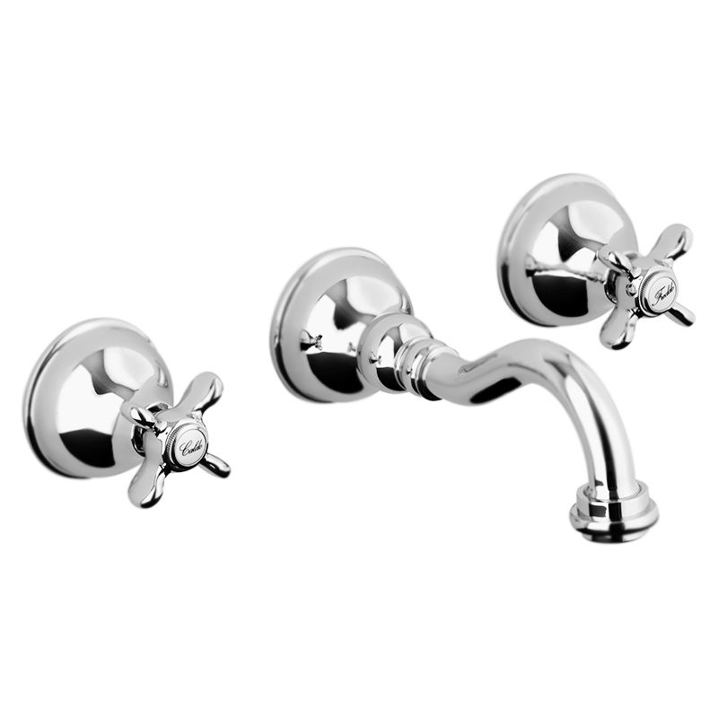 Настенный смеситель для раковины и раковины-чаши Webert Ottocento OT750404015 двухвентильный, встраиваемый, на три отверстия, в комплекте с внутренней частью.