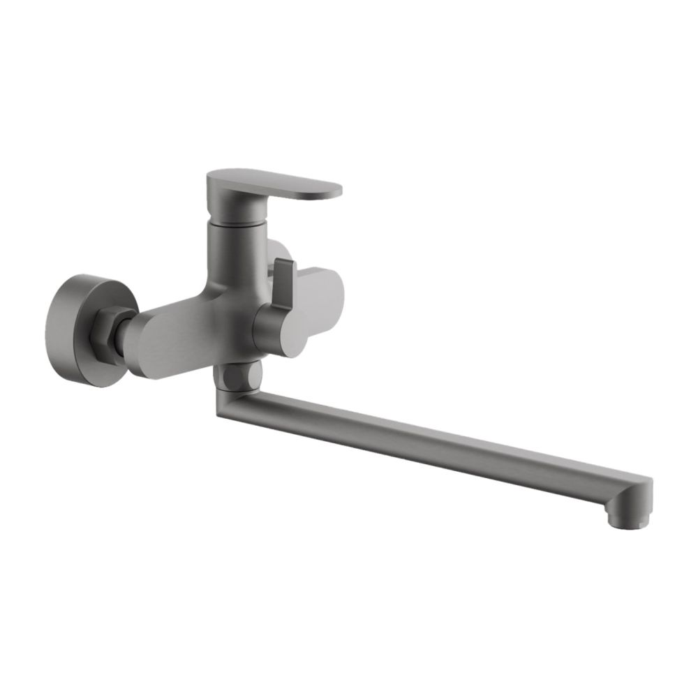 Длинный поворотный излив, оснащённый аэратором, позволяет удобно наполнять ванну и способствует экономии воды, делая струю мягче и равномернее. Классический настенный монтаж через эксцентрики с межосевым расстоянием 150 мм обеспечивает простоту установки. В комплекте с смесителем идёт трёхрежимная душевая лейка из ABS-пластика, которая предлагает разнообразные варианты водных процедур, и душевой шланг в двойной металлической оплётке длиной 150 см, что гарантирует его надёжность и долговечность.