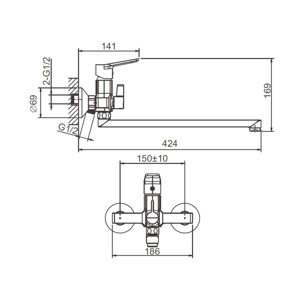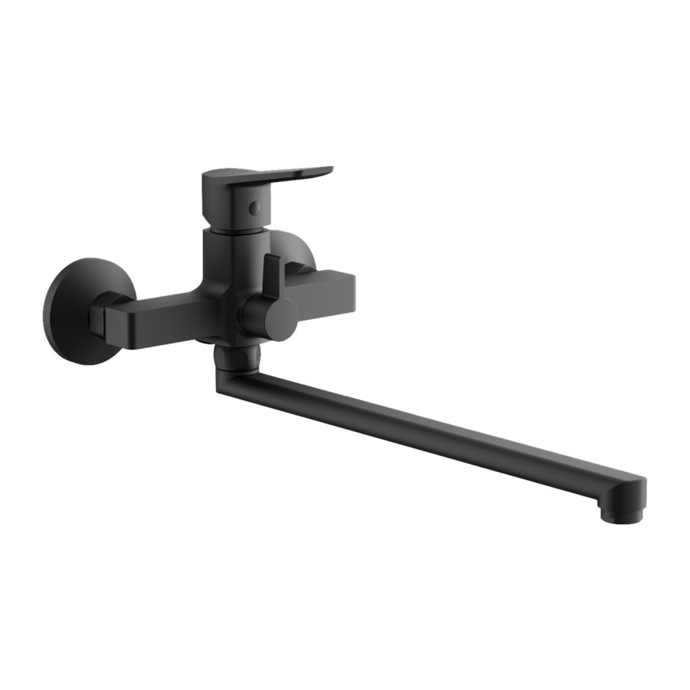 Длинный поворотный излив, оснащённый аэратором, позволяет удобно наполнять ванну и способствует экономии воды, делая струю мягче и равномернее. Классический настенный монтаж через эксцентрики с межосевым расстоянием 150 мм обеспечивает простоту установки. В комплекте с смесителем идёт трёхрежимная душевая лейка из ABS-пластика, которая предлагает разнообразные варианты водных процедур, и душевой шланг в двойной металлической оплётке длиной 150 см, что гарантирует его надёжность и долговечность.