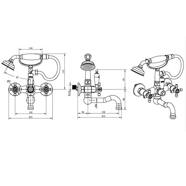 - смеситель с держателем ручного душа;
