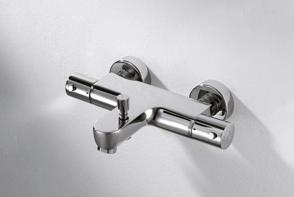 Термостат для ванны и душа Bravat Stream F63984C-01B. Корпус латунь. Ручка цинк. Керамический картридж G1/2 Geann. Термостатический картридж Vernet. Аэратор Neoperl. Поток воды 20 л/мин при давлении 0.3 MPa.