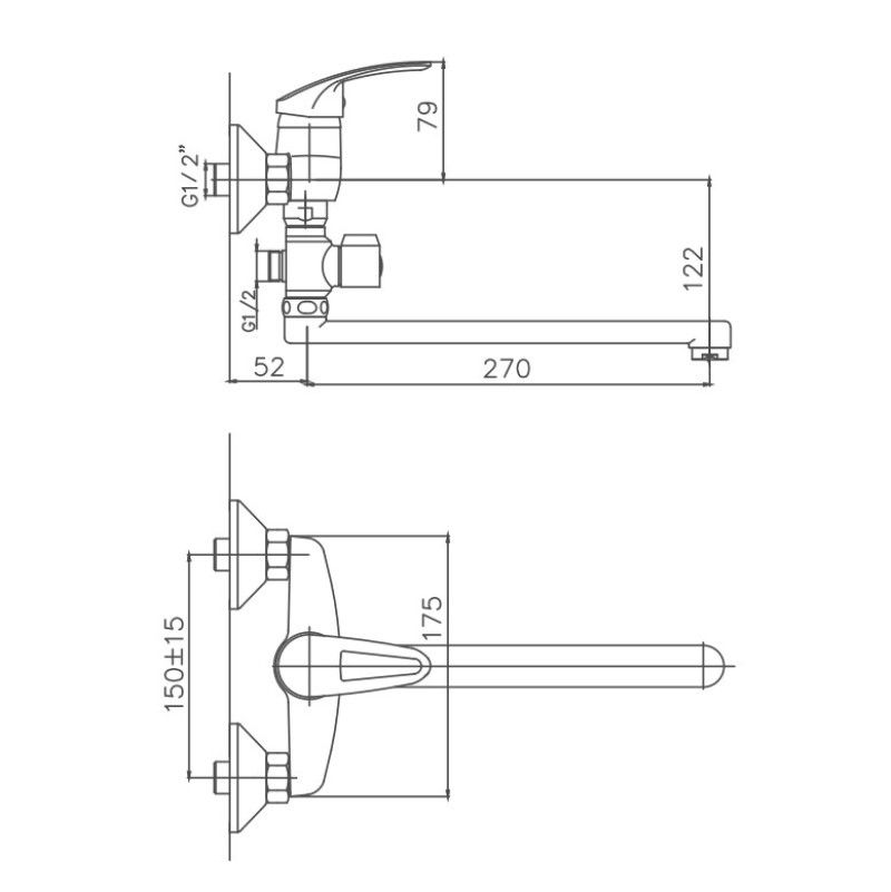 Керамический картридж 35 мм. Смеситель изготовлен из металлического сплава. Диаметр декоративных чашек 70 мм. Душевой гарнитур в комплекте. Межосевое расстояние (расстояние между выходом горячей и холодной трубы) 150 мм. Данное расстояние изменяется за счет входящих в комплект эксцентриков на 15 мм. в большую или меньшую стороны. Цвет хром