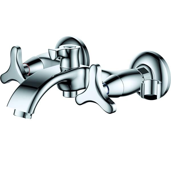 Смеситель для ванны D&K Goethe Hessen DA1383241 с коротким изливом и душевым гарнитуром, двухзахватный, на два отверстия для монтажа.