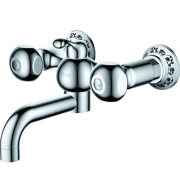 Смеситель для ванны D&K Kassel Hessen DA1423201 с коротким поворотным изливом и душевым гарнитуром, двухзахватный, на два отверстия для монтажа.
